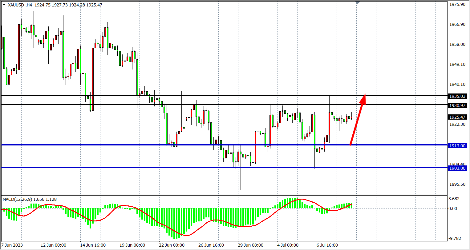 现货黄金XAUUSD 四小时图