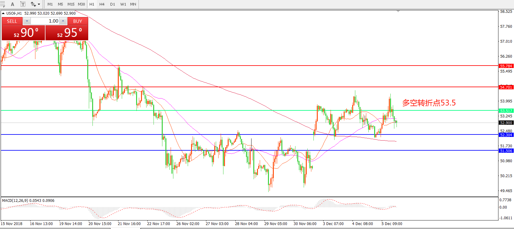 交易策略:在53.5之上看涨,目标54.70 55.80