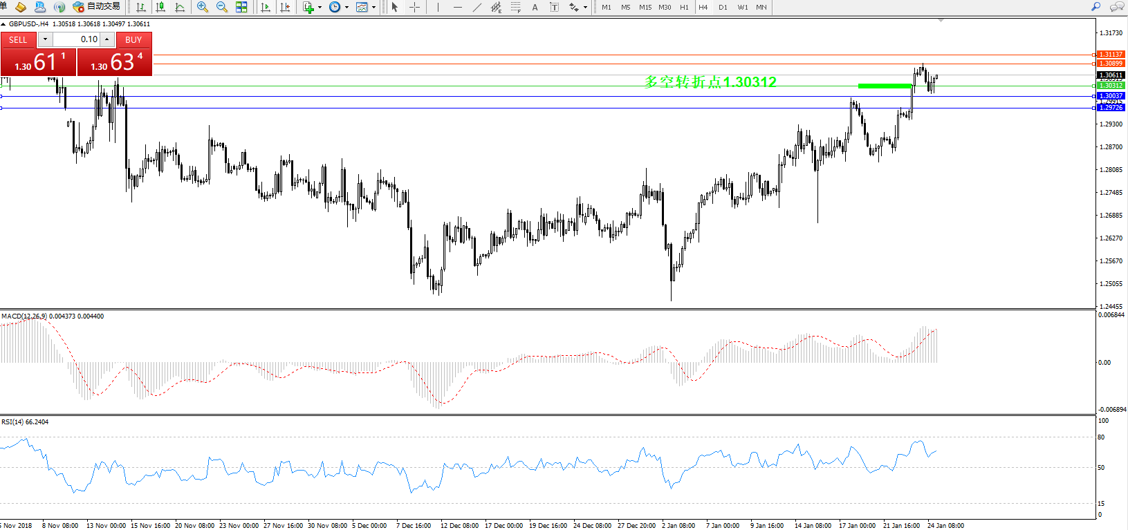 交易策略:1.30312上方看涨,目标1.308991.31137