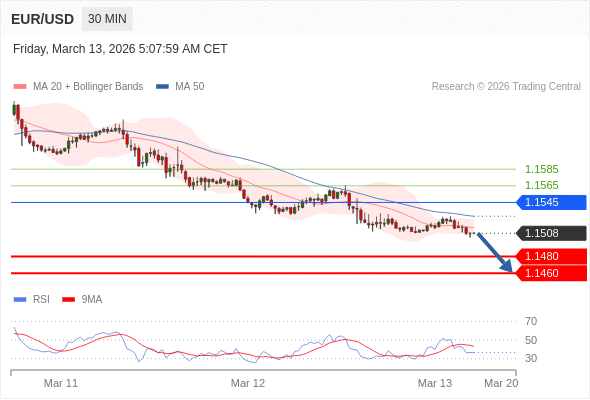 在 1.1545 之下,看跌,目标价位为 1.1480 ,然后为 1.1460 。