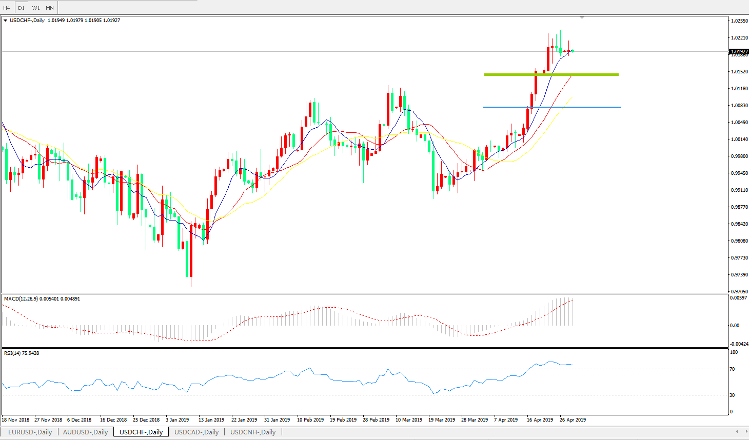 美元兑瑞郎USDCHF 日线图: