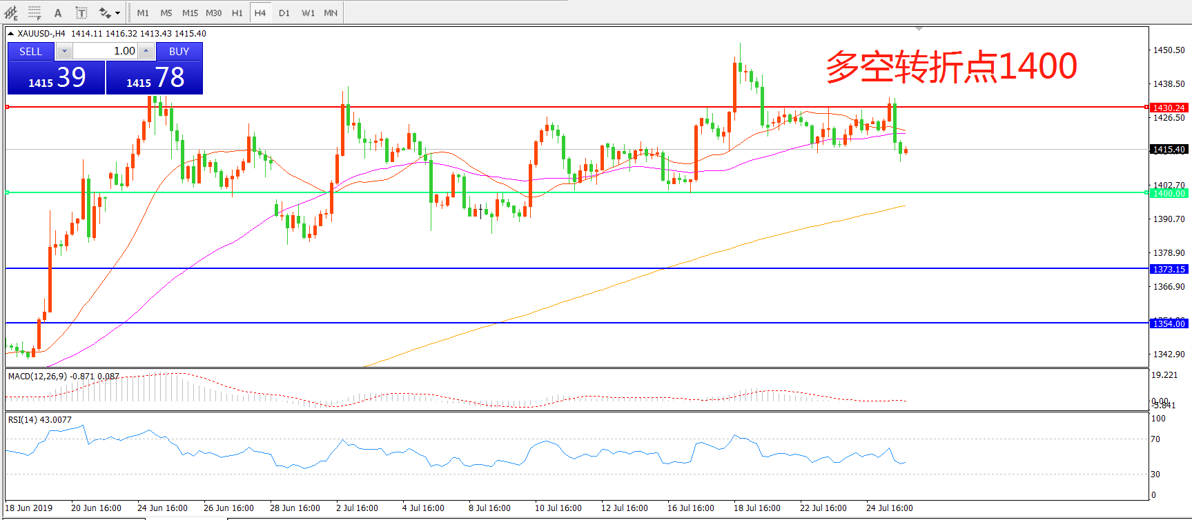 多空转折点:1400.00