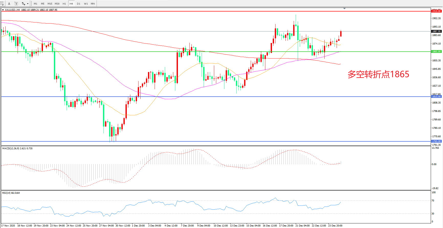 多空转折点:1865.00
