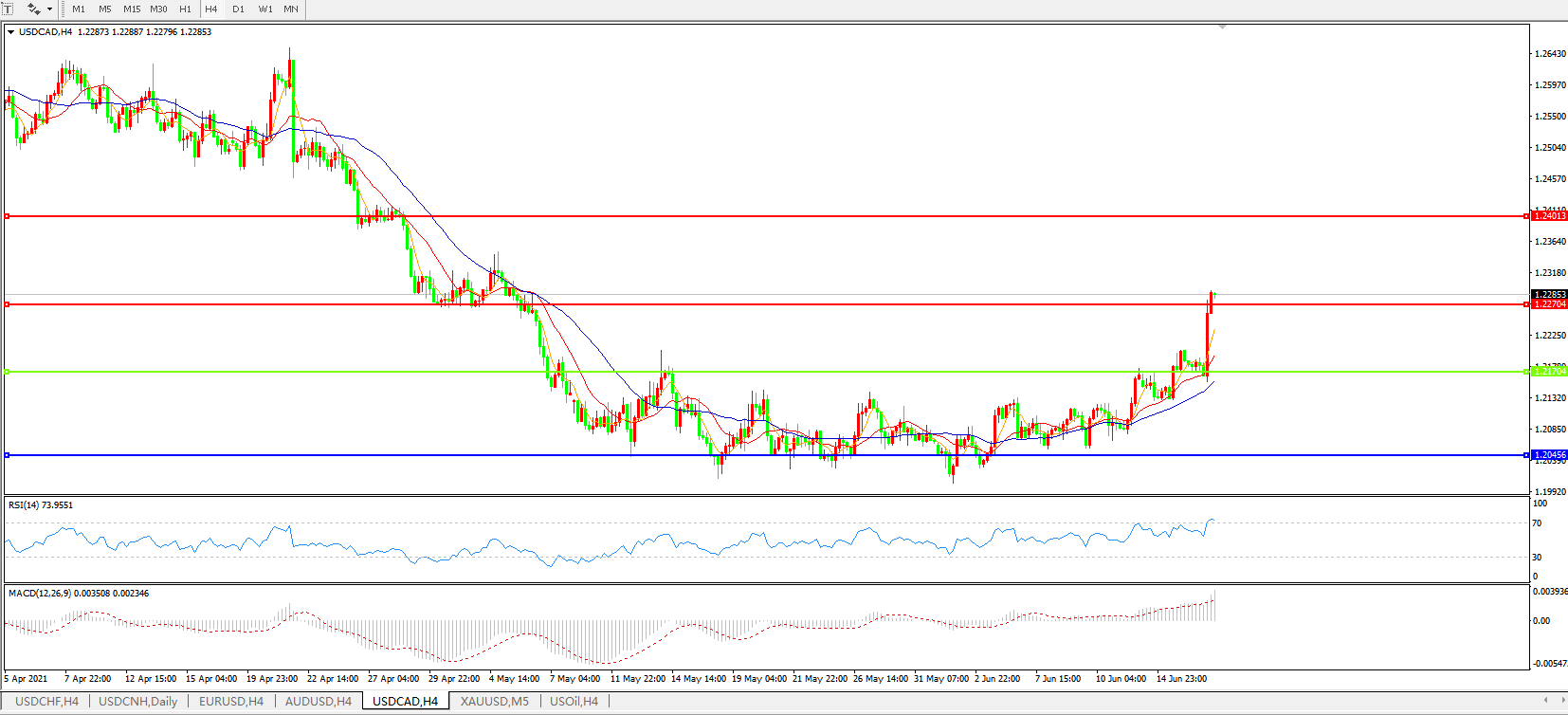 美元兑加元USDCAD 4小时图: