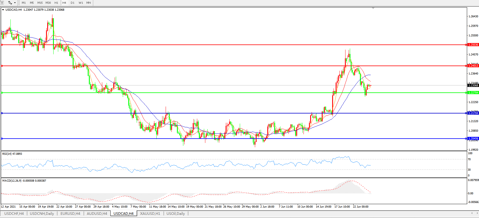 美元兑加元USDCAD 4小时图: