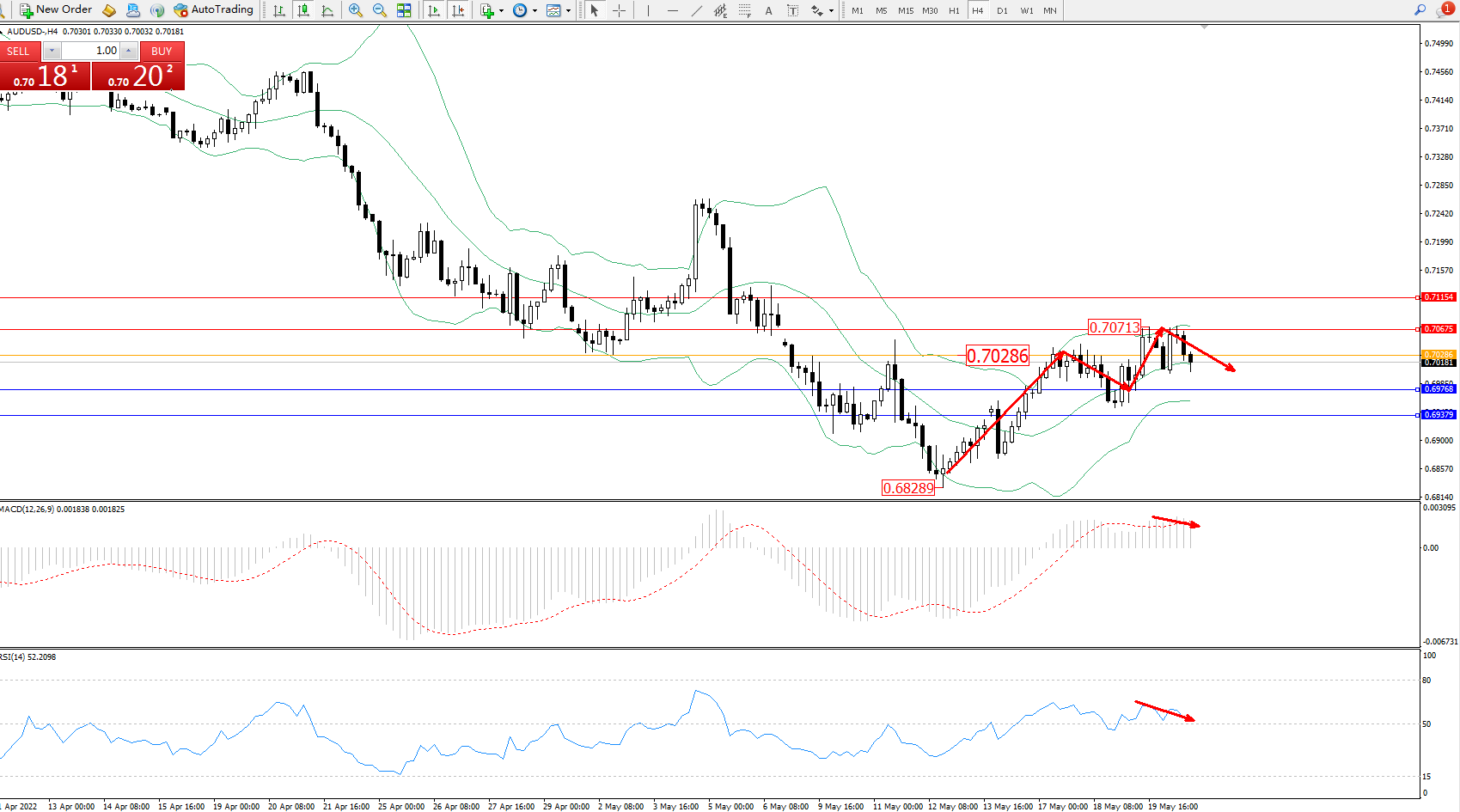 澳元美元AUDUSD——4小时K线图显示: