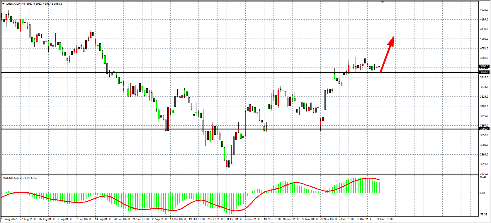 4小时图看,沪深3000在3940点受到支撑,MACD于零轴之上维持放量状态,显示行情仍有进一步扩大涨幅需求,当前支撑继续关注3940附近,上方压力则关注4010附近,有效突破4010将打开新一轮上行空间。