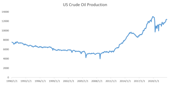 对于大基金经理来说,标普指数,美债,商品三大类别,如何投资回报率更有吸引力。在标普指数和10年期中,显然标普指数的回报率不如美债吸引人,美债成为基金经理的优先选择之后,商品也总是要选配的。这三张图显示,美国原油期货投机者头寸数量下降,美国原油产量上升,美国能源股基金ETF价格上升。