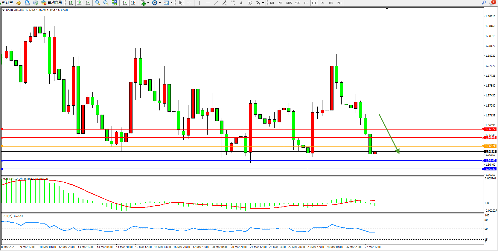 美元加元USDCAD——4小时K线图显示: