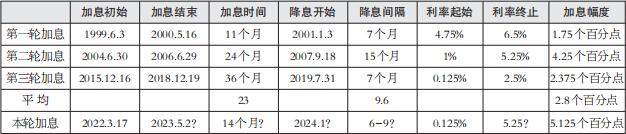 第一轮周期为1999年6月至2000年5月。20世纪90年代中后期,美国互联网科技迅猛发展,推动了美国经济的高速增长,但经济繁荣之后迎来经济泡沫,美联储重启加息将联邦基准利率由4.75%升至6.5%。2000年5月,互联网泡沫开始破灭,美国经济见顶回落,失业率持续走高,美联储结束本轮加息周期,时间持续了1年时间。随后“9·11”事件令经济雪上加霜,美联储在观察了半年后于2001年年初开始新一轮降息周期。